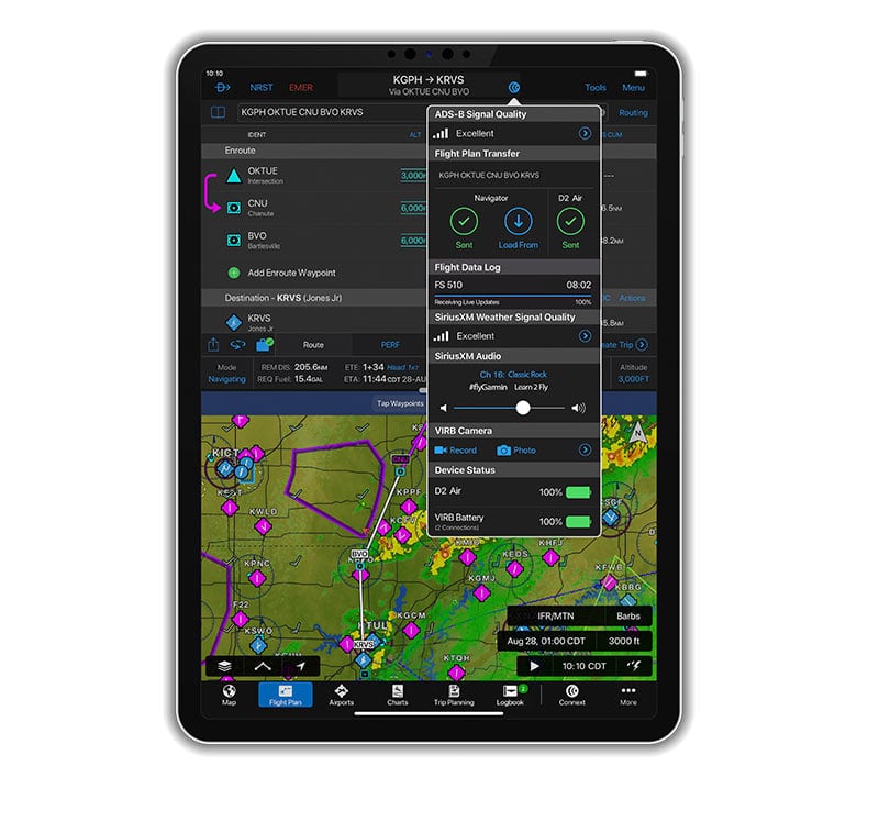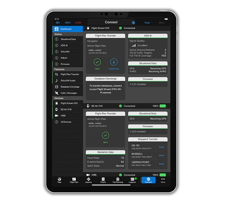 Experience the revolutionary cockpit connectivity of patented technology with Flight Stream 510. A game-changing addition to the Connext platform, Flight Stream 510 pairs with your GTN™ 650 and GTN 750 series navigators to add greater flexibility and convenience both inside and outside of the cockpit — to save you time and workload. It requires no wiring changes or complex installation considerations, yet it allows you to more easily manage your database subscriptions via the Garmin Pilot app — while also enabling wireless flight plan transfer with your GTN, sharing of traffic, weather, GPS and more. And if you have G500 or G600 glass flight displays paired with a GTN, Flight Stream 510 even wirelessly displays back-up attitude information on a mobile device.